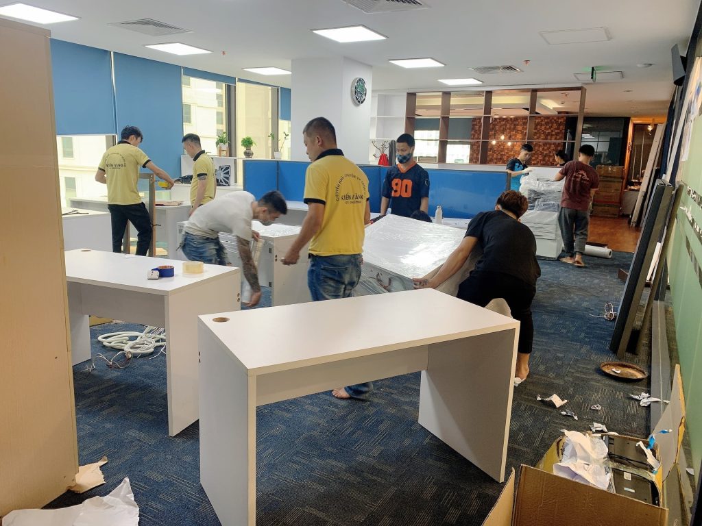 • Di dời toàn bộ nội thất văn phòng: Từ bàn ghế, tủ, kệ, két sắt đến thiết bị trang trí.